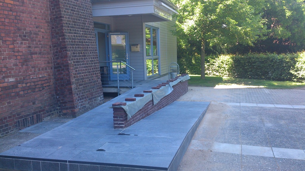 Gleichzeitig wurde am Eingang vor dem Geindezentrum am Lauerhaas heftig gearbeitet. Nach längerer Vorbereitung und Diskussion im Presbyterium war der Bau einer Rampe genehmigt worden, damit der Zugang für all jene erleichtert wird, die mit Rollator, Kinderwagen etc. das Gemeindezentrum betreten möchten. Auch drei Stufen können dabei für viele ein schwer überwindbares Hindernis darstellen. Ein größerer fünfstelliger Betrag wurde von der Gemeinde zur Realisierung zur Verfügung gestellt. Nun ist die Rampe fast fertig. Damit gibt es nun einen weiteren barrierefreien Zugang bei den Gebäuden der Evangelischen Kirchengemeinde Wesel. Nach dem Bau der Rampe am Haus am Dom und an der Gnadenkirche. Der Besucher kann die neue Rampe künftig auch für den Zugang zur Kirche benutzen.