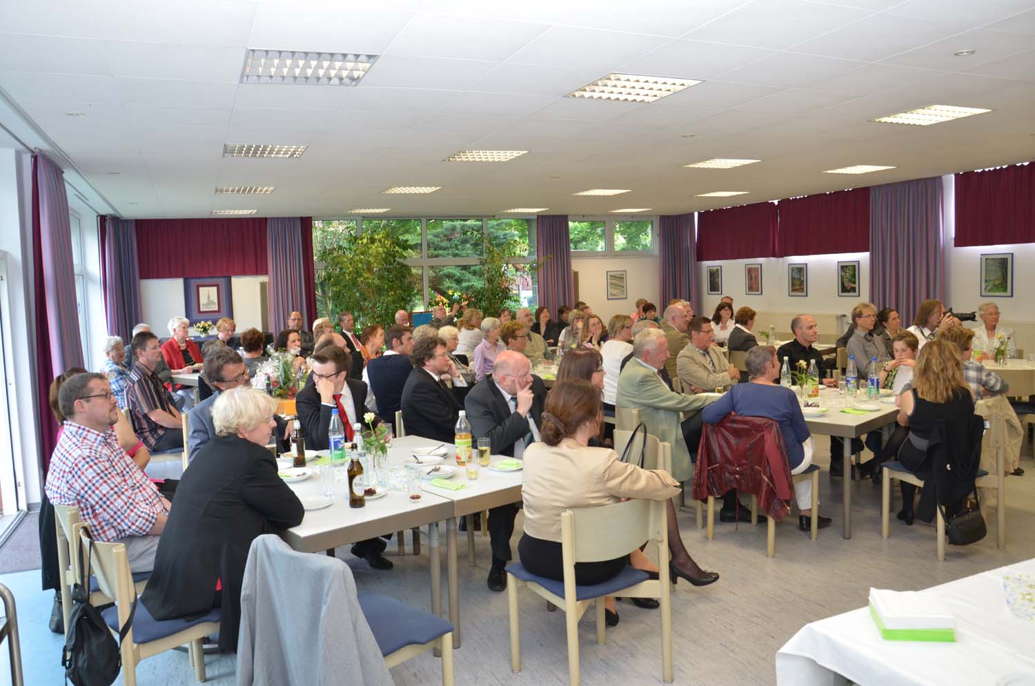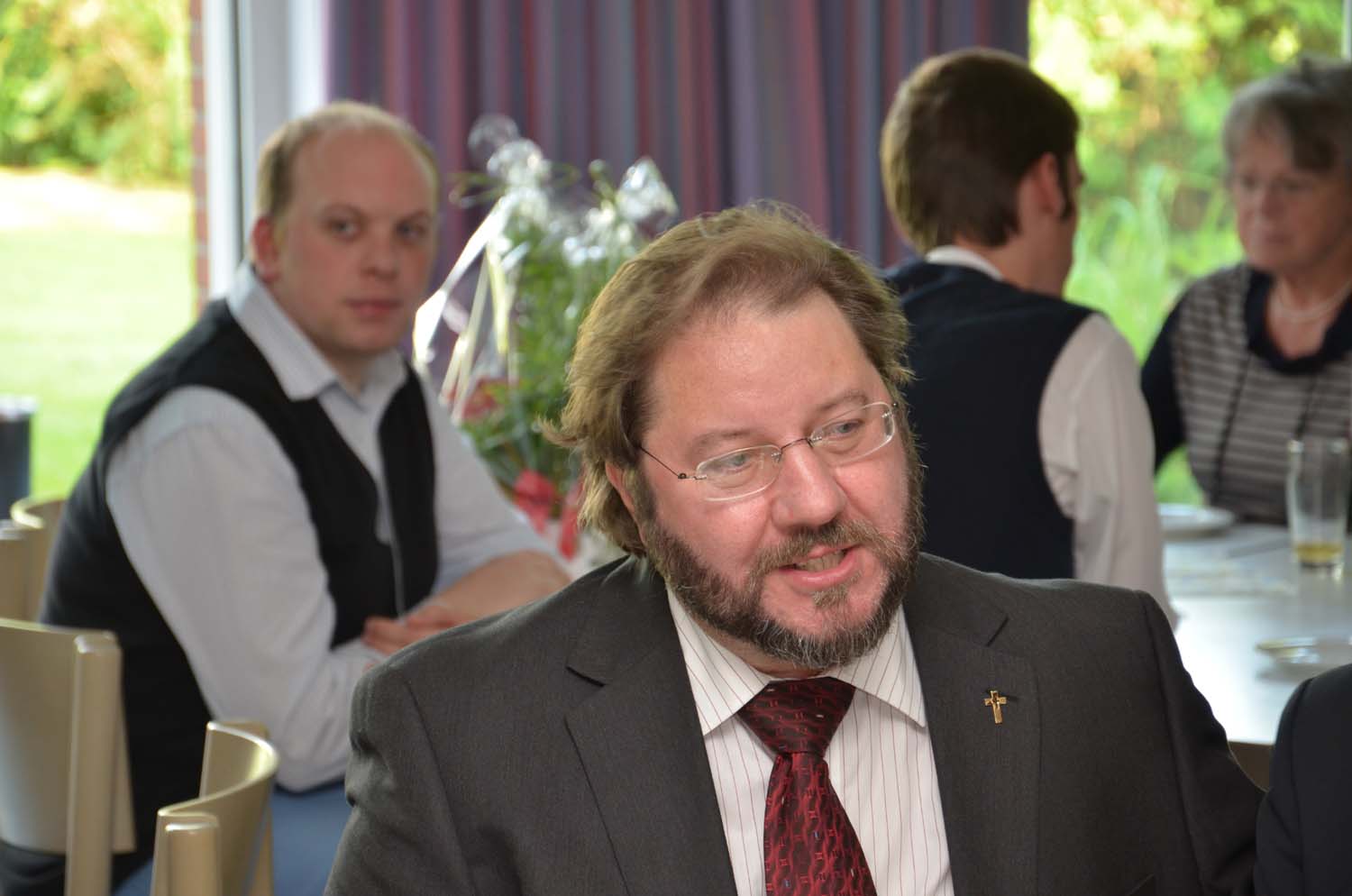 Nach dem Gottesdienst trafen sich Gemeinde, Familie, Freunde und Wegbegleiter der unterschiedlichsten Lebensstationen von Pastor Theising im Gemeindehaus, wo nach dem Essen zahlreiche Grußworte gesprochen wurden. Axel Theising dankte für alle Geschenke und die vielen guten Wünsche und freut sich auf seine Arbeit in der evangelischen Kirchengemeinde. Auch privat hat sich einiges für ihn verändert: Er ist mit seinem Mann von der linken Rheinseite nach Wesel gezogen.