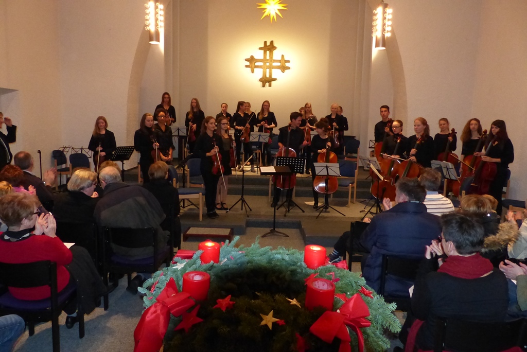 Die Kirche am Lauerhaas war am 2. Advent bis auf den letzten Platz mit Konzertbesuchern und ausführenden jungen Musikern gefüllt. Verschiedene Ensembles aus Bläsern und Streichern der Musikschule Wesel spielten klassische wie moderne Werke. Es erklangen bekannte weihnachtliche Melodien wie Händels "Tochter Zion" genauso wie ein umfangreiches Orchesterwerk für Orchester und zwei Cellisten von Antonio Vivaldi. Auch die Orgel wurde von dem 16-jährigen Milan Skusa souverän mit Werken von Bach und Walther zum Klingen gebracht. Dagmar Beinke-Bornemann bedankte sich bei den ausführenden Musikern und Lehrern und der gastgebenden Evangelischen Kirchengemeinde Wesel. Am Ausgang kamen gut 800 Euro als Kollekte für die Flüchtlingshilfe Wesel e.V. zusammen.