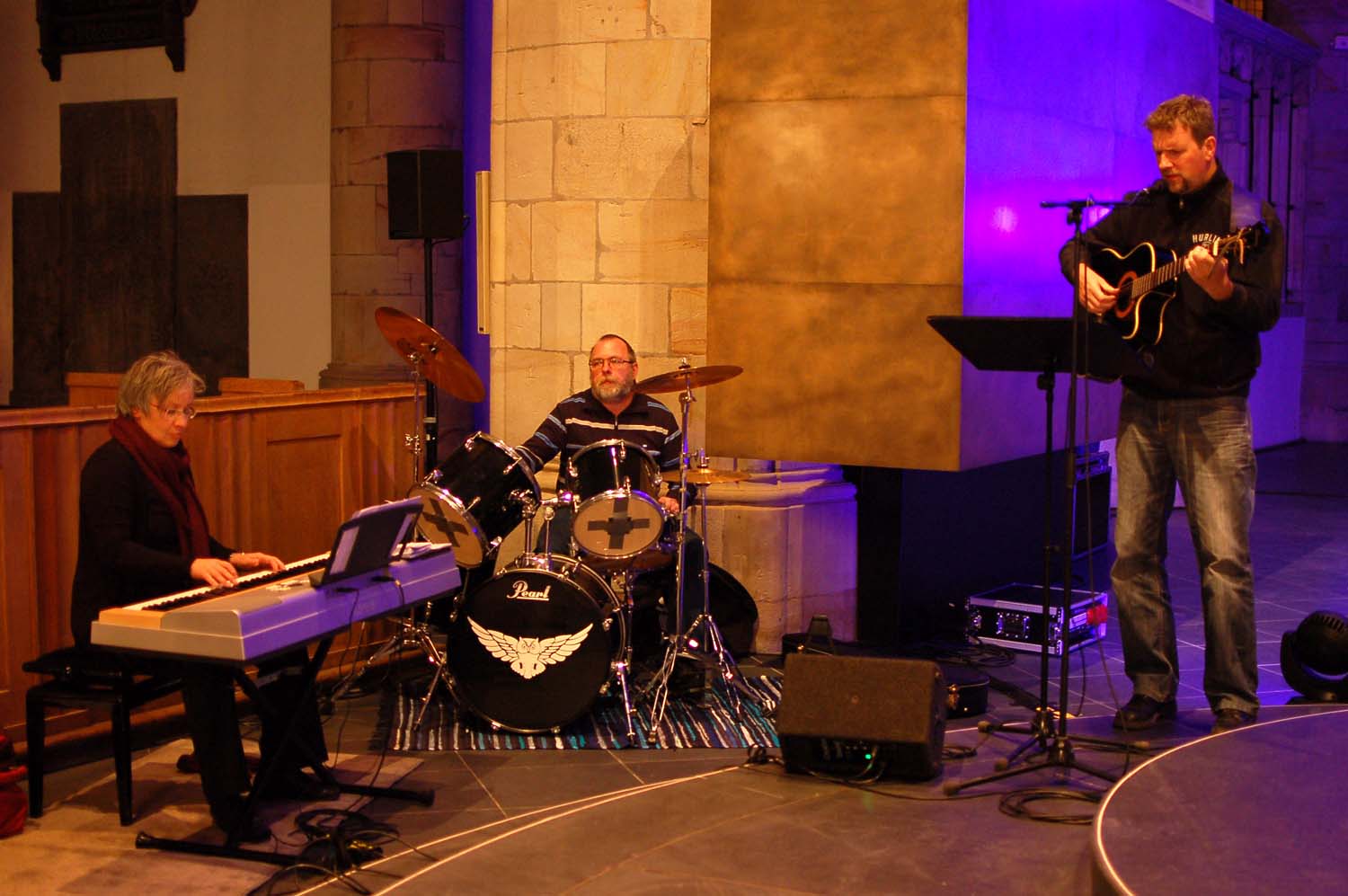 Schon durch die Deko wurde die Fantasie und durch Filmsequenzen die Neugier geweckt. Statt Orgelmusik lieferte die Nachteulen-Combo den passenden Rhythmus, wobei das Musikspektrum durchaus von Blockflöte über Musical bis Rap reichte. Auch die Themen wiesen eine große Bandbreite auf und reichten von Fidji-Träumen über das Börsen-Fieber bis zur Bewahrung der Schöpfung und zum Tod.Die Mitwirkenden - mit oder ohne theologische Vorbildung - agierten stets auf Augenhöhe und übernahmen unterschiedlichste Aufgaben, wobei sie auch neue Fähigkeiten an sich entdeckten. Auch den Besucherinnen und Besuchern bot sich immer wieder die Gelegenheit, aktiv zu werden: Beim "Reaktionsritual" legten sie Mandalas oder weckten das Glück ein - vielen gefiel gerade diese Möglichkeit der Beteiligung besonders gut. Trotz der späten Stunde nutzten viele noch das Nachtcafé, um miteinander ins Gespräch zu kommen.