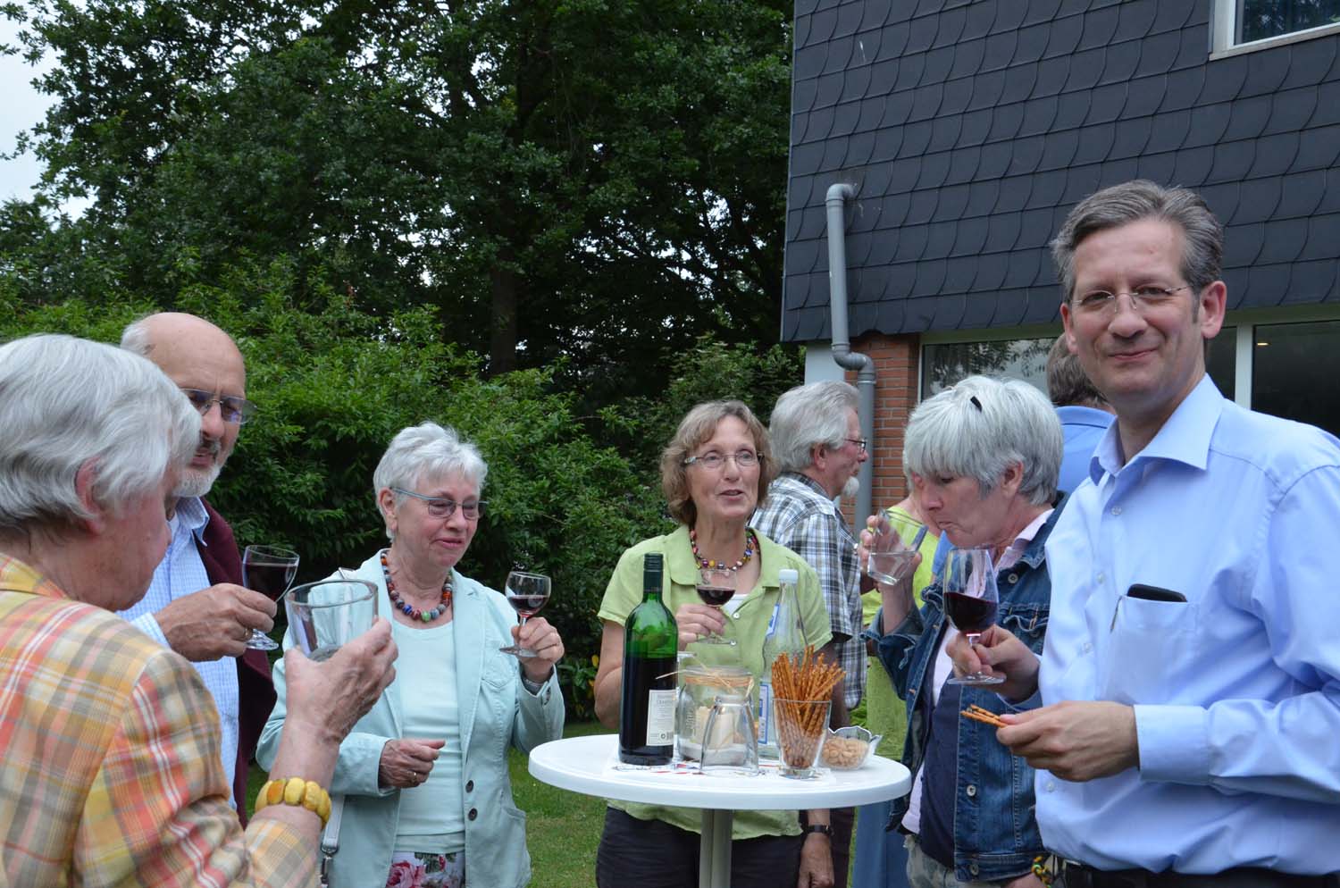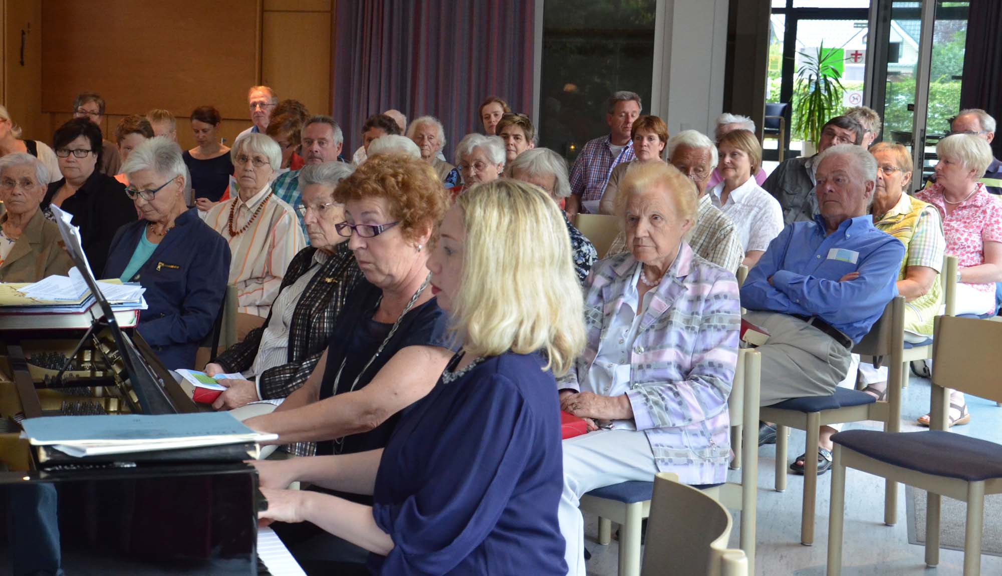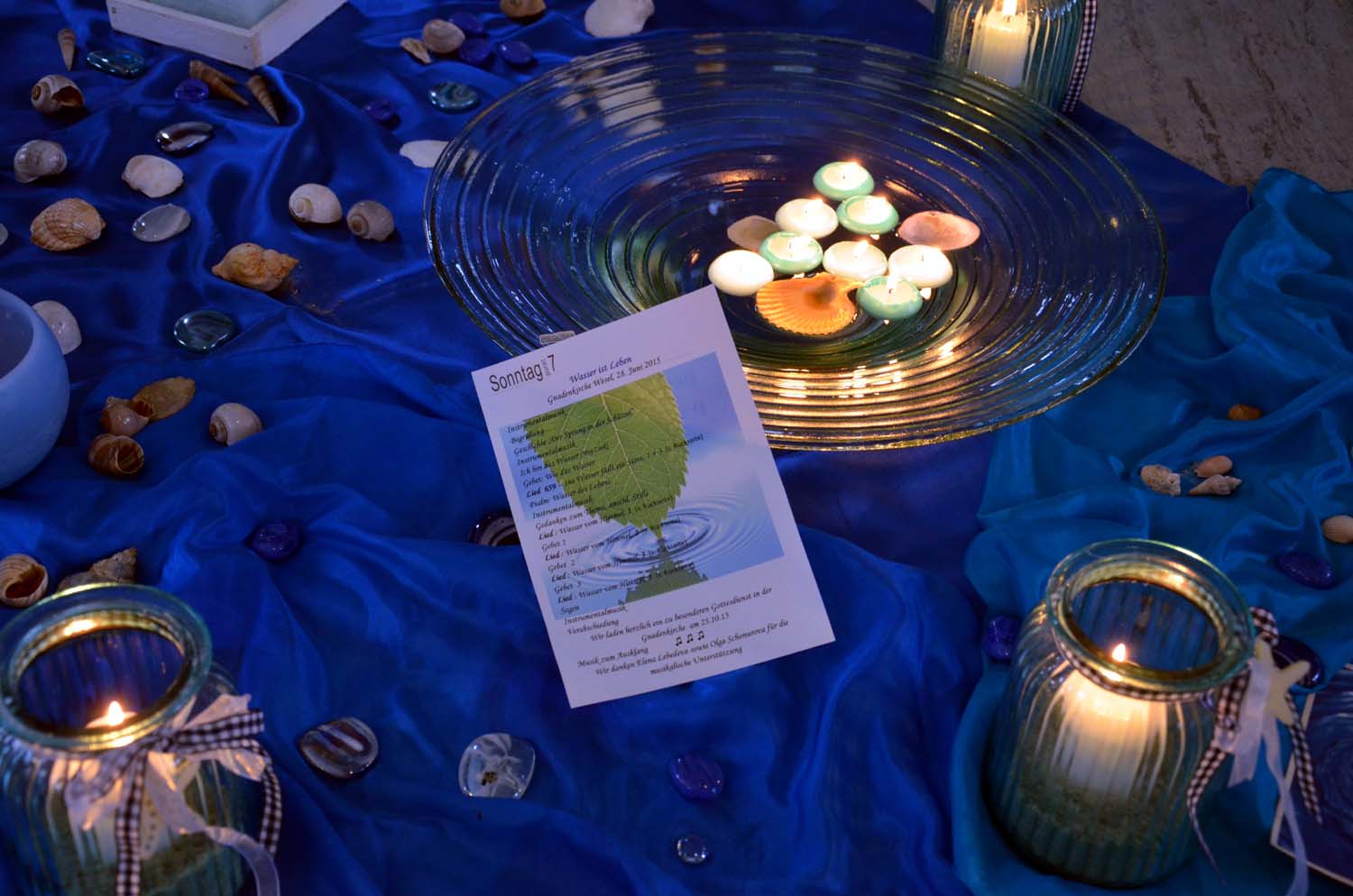 Zum Auftakt der Sommerferien fand am letzten Sonntag im Juni ein Meditativer Gottesdienst statt. Das Vorbereitungsteam freute sich, dass trotz schönen Sommerwetters sehr viele Menschen den Weg in das lichtdurchflutete Gemeindehaus an der Gnadenkirche gefunden hatten. Zum Thema „Wasser ist Leben“ wies Pfr. Thomas Brödenfeld auf die Bedeutung des Wassers in anderen Kontinenten hin, stellte aber auch die Frage, inwieweit unsere Gemeinden in Deutschland eigentlich ‚Ströme lebendigen Wassers‘ sind. Wunderbar musikalisch begleitet wurde der Gottesdienst diesmal von zwei Pianistinnen, Elena Lebedeva und Olga Schonurova, die nicht nur die Gemeindelieder begleiteten, sondern auch vierhändig schöne Klavierstücke spielten. Diese luden ein, den eigenen Gedanken freien Lauf zu lassen. Zum Ausklang mit Wasser, Wein und Knabbereien blieben noch viele und freuten sich, dass sie den schönen Sommerabend draußen auf der Wiese genießen konnten.