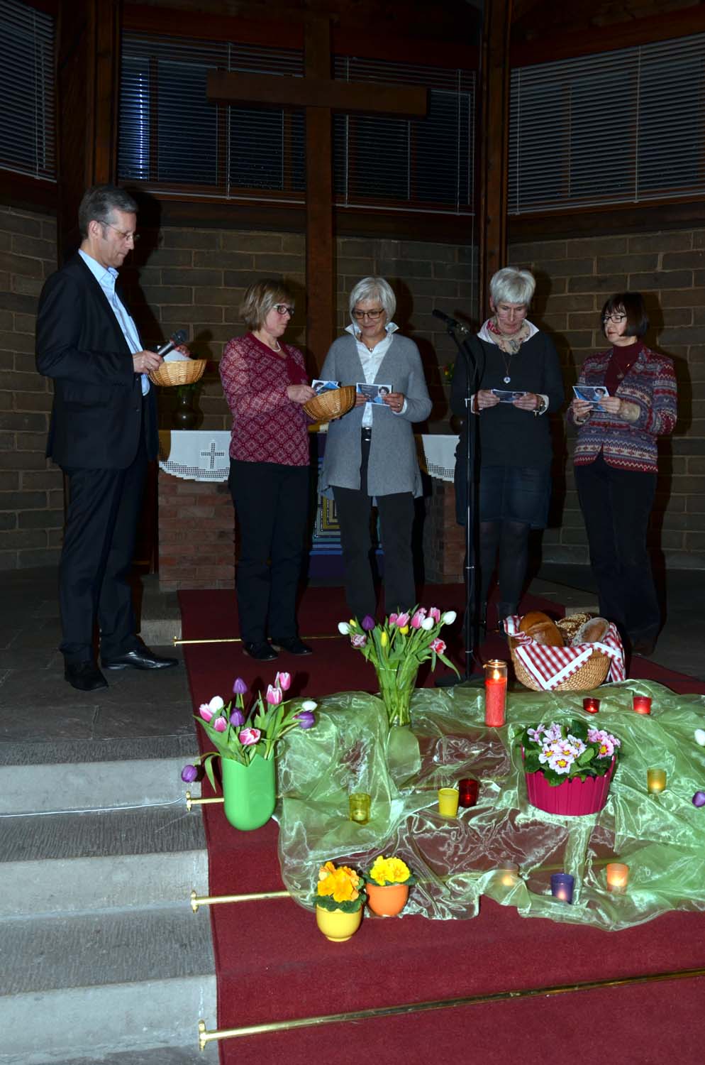Wie würde sich unser Leben, unsere Welt verändern, wenn wir alle vorsichtig versuchen würden, unser Herz von Einengungen zu befreien und so ein bisschen mehr zu öffnen? Und sei es erstmal probeweise nur für 7 Wochen? Und was macht überhaupt unser Herz weit? In einer Meditationsphase konnten die Besucherinnen und Besucher ihre Gedanken dazu auf Karten aufschreiben, die sie schon am Eingang der Kirche erhalten hatten. Einige Antworten wurden vom Vorbereitungsteam vorgelesen: Sie geben einen Eindruck davon, wie bunt und weit unsere Welt und unser Zusammenleben sein kann, wenn wir alle unsere Herzen öffnen.
