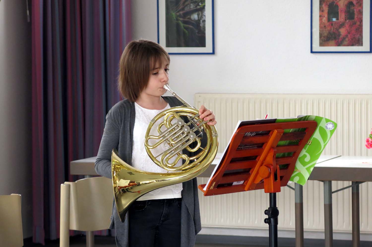 Für die musikalische Unterhaltung sorgten Elena Lebedeva am Klavier und die junge Maren Marx, die ein buntes Potpourri auf dem Horn spielte: Neben einem Thema aus der Oper "Carmen" z. B. ein Menuett oder - schon in Vorfreude auf den nahenden Sommer - das Stück "Oh du schöner Rosengarten". Daneben gab es viel Zeit zum Austausch bei Kaffee und Kuchen. Die Feier für die Geburtstagskinder des zweiten Quartals wird am 15. Juli, ebenfalls einem Freitag, stattfinden. Die Geburtstagskinder bekommen mit den Glückwünschen eine Einladung sowie eine Anmeldekarte. Gerne kann auch eine Begleitung mit angemeldet werden.