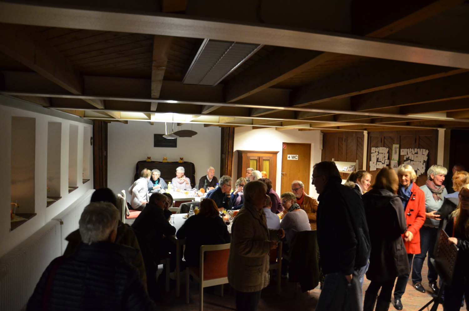 Im Anschluss saßen noch viele Besucherinnen und Besucher dieses Gottesdienstes im Vorraum der Gnadenkirche bei Getränken und Knabbereien zusammen und ließen das Gehörte Revue passieren.