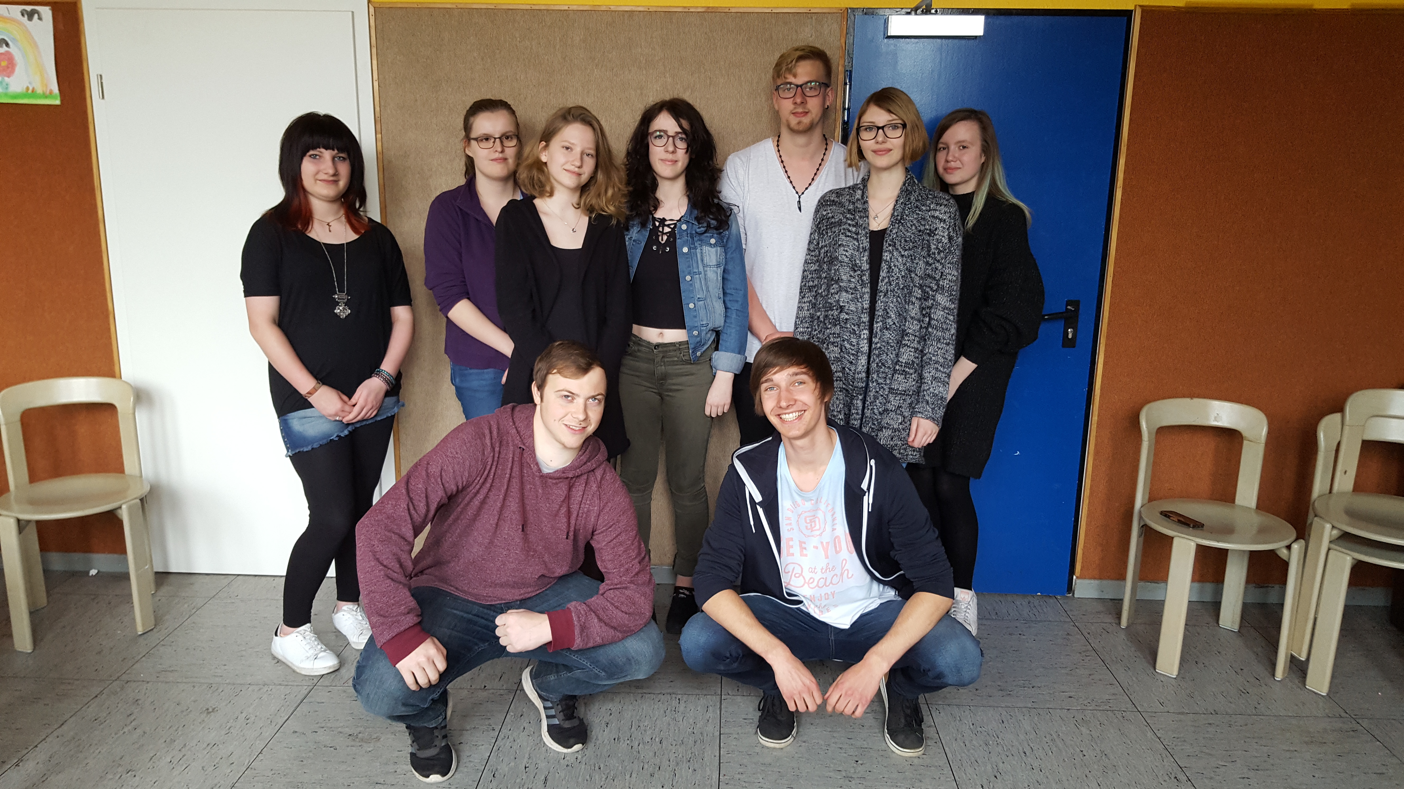 Auf dem Foto abgebildet sind Sascha Pauls, Jona Kielmann (vorne) und die ehrenamtlichen Teamer und Teamerinnen, welche nicht nur in den vier Tagen, sondern auch bereits bei der Planung sehr aktiv waren: (hinten, von links) Julienne Hocke, Miriam Hendriks, Lea Matus, Tjaarda Rehe, Tim Distel, Hannah Sondernmann, Madeline Celine Pietruszewska.