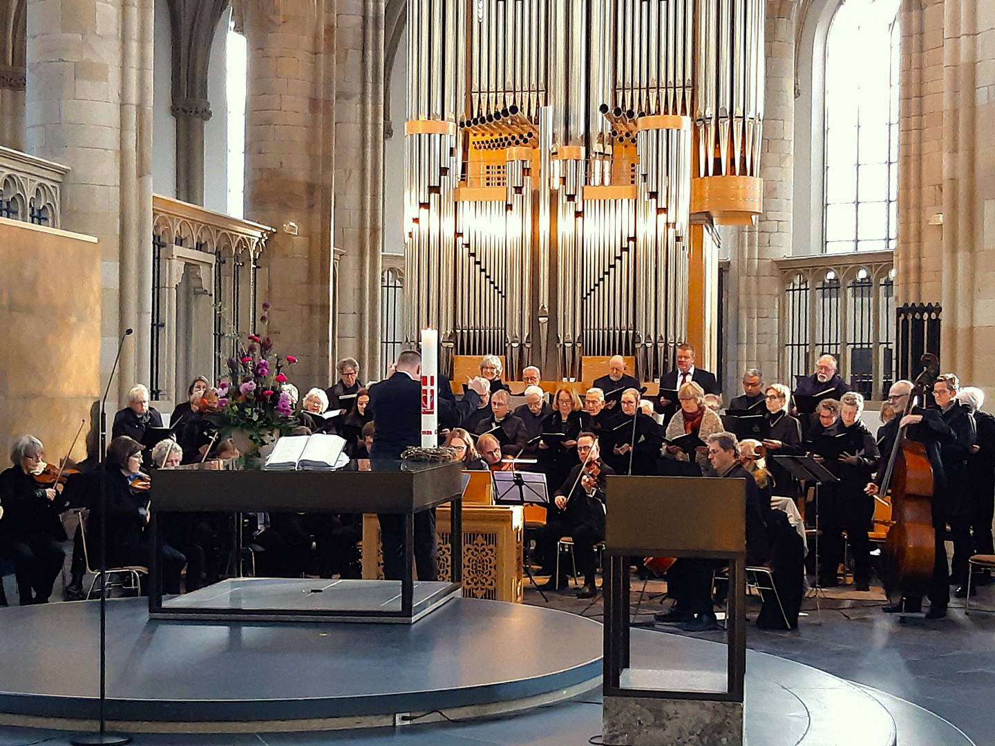 Bereits zum zweiten Mal führte Kantor Ansgar Schlei eine Bach-Kantate zum Mitsingen im Gottesdienst auf. Pfarrer Thomas Bergfeld ging in der Predigt auf das zugrundeliegende Lied des Dichters Johann Jakob Schütz ein.