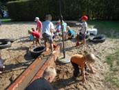 Das großzügige, naturnah angelegte Außengelände unserer Kindertageseinrichtung mit altem Baumbestand ist ein wichtiger Lebensraum der Kinder. Hier verbringen sie täglich viel Zeit und sammeln elementare Erfahrungen beim Matschen, Toben Rennen, Schaukeln, Klettern oder Balancieren.