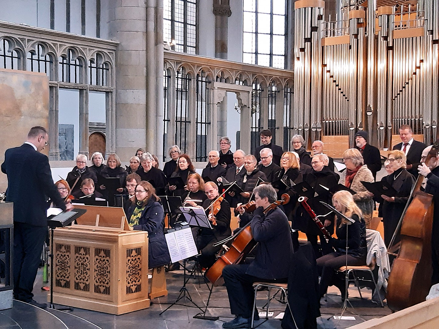 Bereits zum zweiten Mal führte Kantor Ansgar Schlei eine Bach-Kantate zum Mitsingen im Gottesdienst auf. Pfarrer Thomas Bergfeld ging in der Predigt auf das zugrundeliegende Lied des Dichters Johann Jakob Schütz ein.
